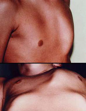 Hippocrates described the carinatum deformity as a "sharply pointed chest" and reported that patients became "affected with difficulty breathing." Symptomatic patients report dyspnea and decreased endurance. Some develop rigidity of the chest wall with decreased lung compliance, progressive emphysema, and increased frequency of respiratory tract infections. [1] Many affected patients have no physical complaints; however, concerns about body image have been associated with low self-esteem and a decreased mental quality of life. [2] Cosmetic concerns can be significant factors in opting for correction.